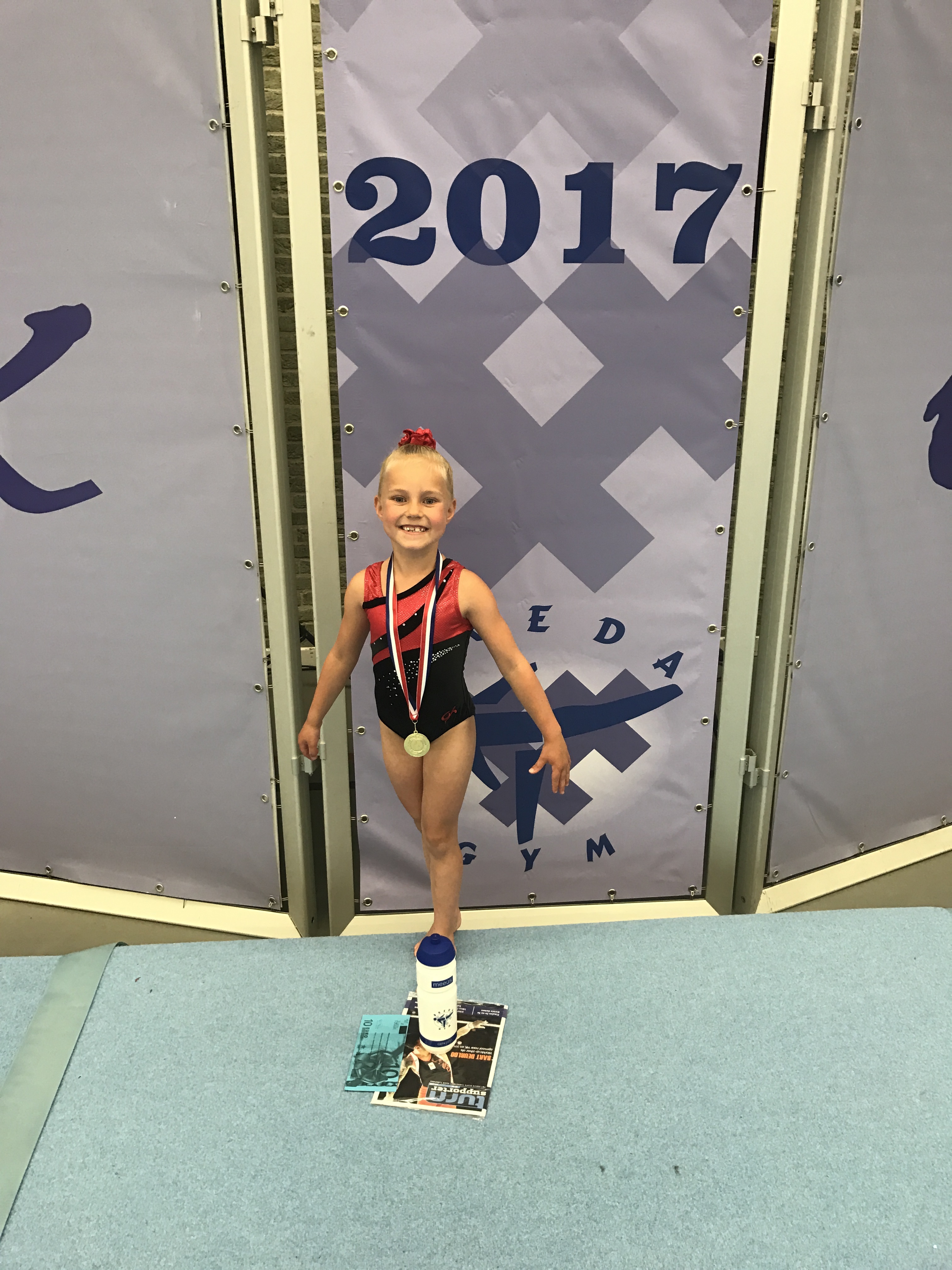 Zondag Op zondag was in alle vroegte het jongste lid van de talentenselectie aan de beurt. Pre-pre instapper D2 Lana van Beekhuizen turnde vandaag al haar tweede wedstrijd. Lana sprong tijdens deze wedstrijd voor het eerst een handstand platval op sprong wat haar maar liefste 14,000 punten en een 2e plek op dit toestel opleverde. Ook op de brug liet ze een sterke oefening zien en werd ze hierbij 1e. Ook lukt het om op de balk te blijven staan met een lange zweefstand. Ook op dit toestel werd ze 1e. Ook liet ze een mooie vloeroefening zien. Tijdens de prijsuitreiking kreeg Lana de gouden medaille omgehangen! Wat een knappe prestatie voor dit nog maar 6 jarige turntalent.