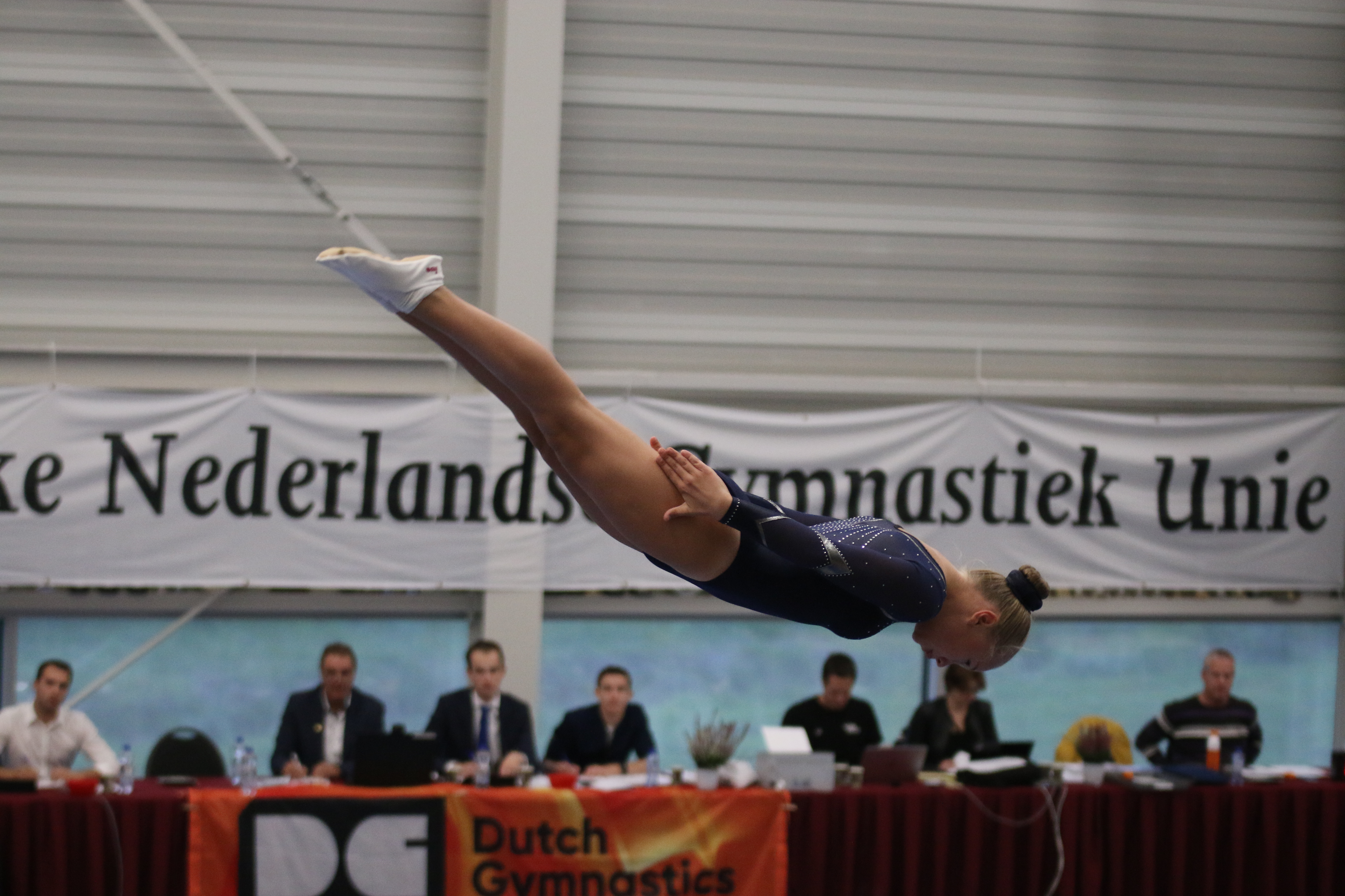 Afgelopen zondag 7 april waren in een nieuwe trampolinehal in Apeldoorn kwalificatiewedstrijden voor het NK, voor de Eredivisie Trampolinespringen. Een nieuwe naam “Eredivisie” voor de hoogste categorie. Deze dag een kans om scores te halen die plaatsing kunnen opleveren voor het Wereldkampioenschap in Tokio in het najaar. En voor de senioren ook voor de European Games.