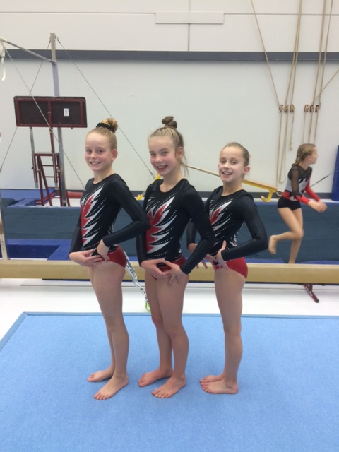 De wedstrijd begon op het toestel balk. Aimee moest als alle eerste van de wedstrijd en helaas lukte het haar niet om de zenuwen onder bedwang te houden en moest het toestel een paar keer verlaten. Helaas een iets minder goede start voor Aimee. Lise turnde een hele stabiele oefening maar lukt het net niet om de radslag erop te staan. Merijn had een iets wiebelige oefening maar bleef er knap op staan en behaalde hoge punten op dit toestel. Op vloer sprongen Aimee en Merijn voor het eerst arabier flikflak en Lise had een hoge score voor de netheid. De meiden hebben dit jaar een nieuwe oefening op muziek maar deze werd al keurig uitgevoerd. De sprong ging helemaal foutloos. Mooie overslagen en hoge salto’s. En tot slot werden er nog hele mooie punten op brug binnengehaald. In totaal eindigde Aimee met 47,900 punten op de 16e plaats, Lise met 49,900 op de 11e plaats en Merijn knap op de 8e plaats met 50,750 punten. Een goede start voor deze nieuwkomers en nu tijd voor verbetering zodat de volgende wedstrijd in februari er nog beter gescoord kan worden.