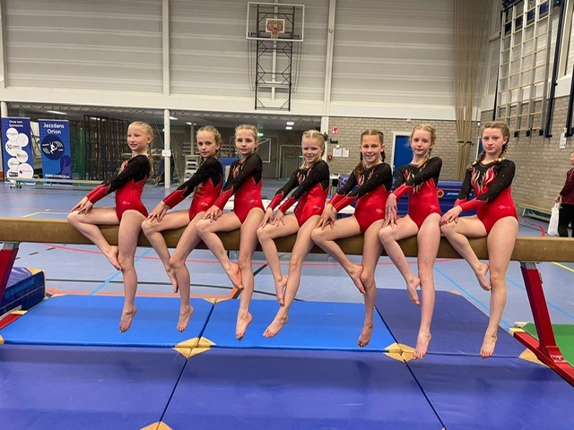 De niveau 6 meiden waren als team 1e geworden! Fleur was totaal 1e en was ze ook op sprong en brug 1e! Febe was totaal 2e en was eerste op balk en vloer! Dariya was totaal 3e, en was 1e op vloer en ook 2e op brug! Evy was totaal 5e met een mooie 3e plek op brug! En Felin had sprong niet geturnd vanwege een blessure anders was Felin totaal 4e geworden, maar had wel een knappe 3e plek op balk!