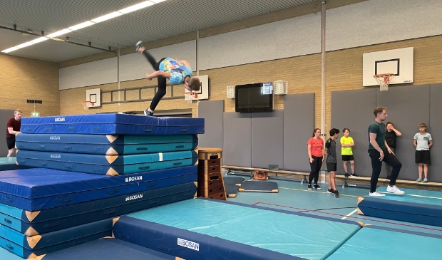 ERMELO - Springen, rennen en salto’s maken over een parcours van gestapelde matten en kasten. Jongeren van Sparta Ermelo leven zich dinsdagavond uit in een sportzaal van het Groevenbeek College. Iedereen op zijn eigen niveau. Freerunnen is niet alleen uitdagend, je kan er ook goed je energie in kwijt.