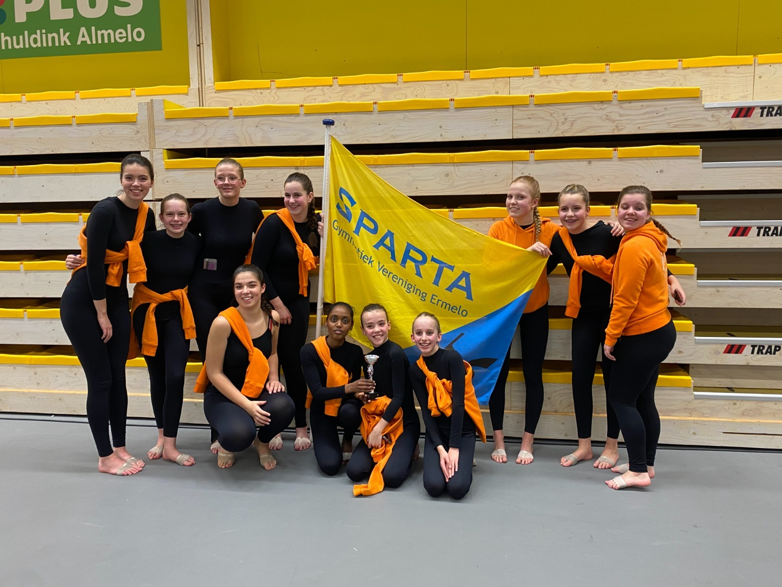 's Ochtends was het de beurt aan de C16 o.l.v. Suzan. In alle vroegte zijn zij naar Almelo gereisd om daar hun wedstrijddans te laten zien aan een volle zaal en, niet te vergeten, aan de jury. Ondanks de zenuwen hebben de dansers goed gepresteerd; ze zijn als 3e geindigd in hun categorie! Met een mooie beker en trotse trainsters keerden de meiden weer huiswaarts. Gefeliciteerd met jullie podiumplek!