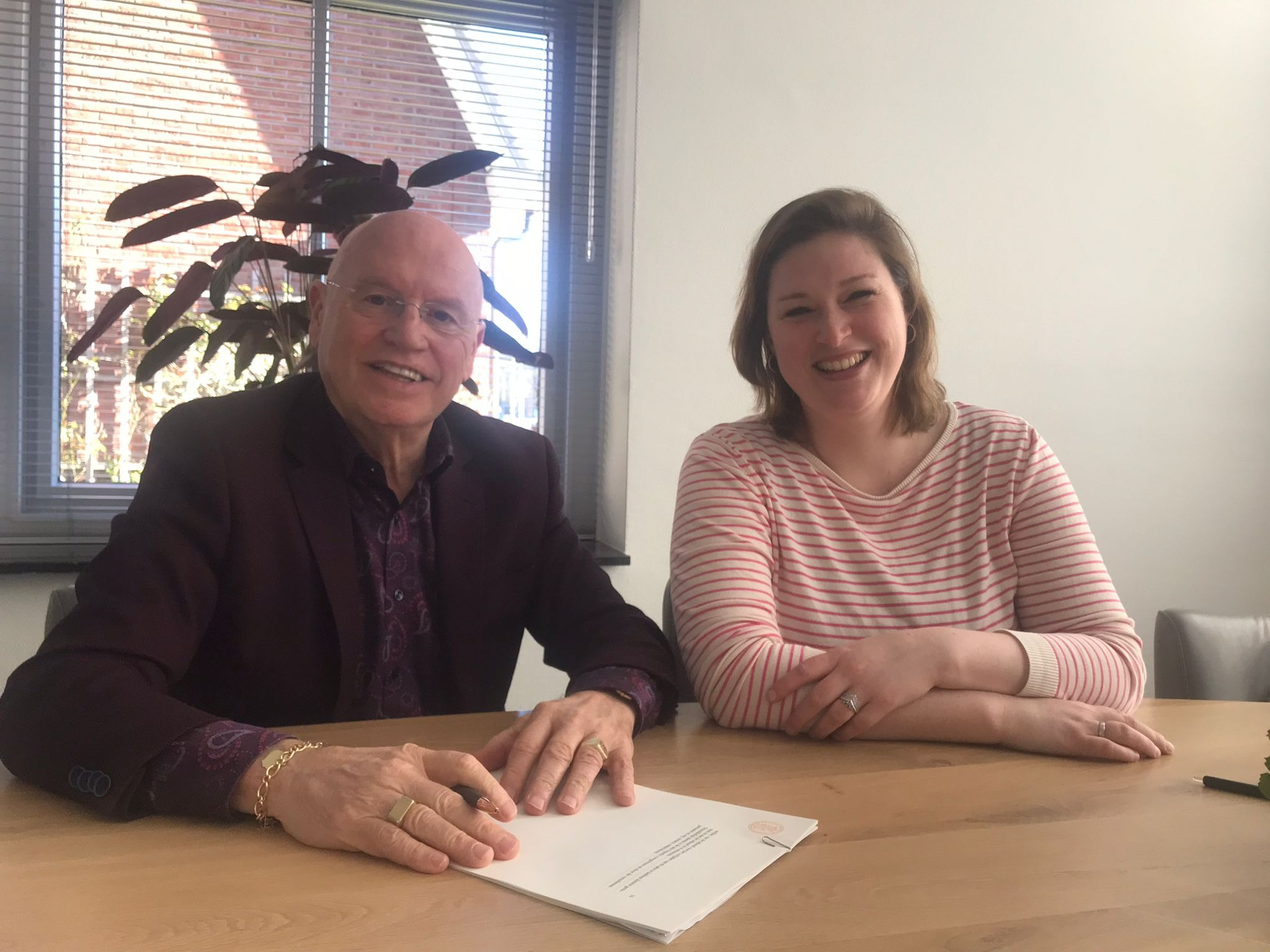 Vrijdagmorgen 14 april om 09:00 uur zitten voorzitter Hans van Zetten en secretaris Christine Brouwer-Kooijmans bij notaris Jacobs aan de Putterweg 12 in Ermelo.