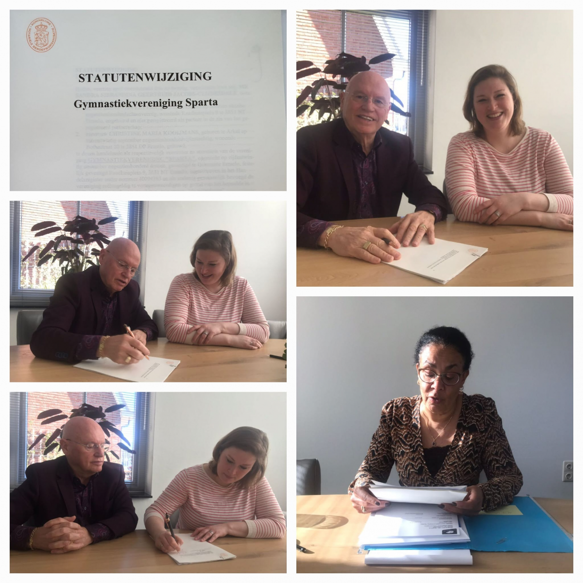 Zij ondertekenen beiden de nieuwe verenigingsstatuten van de gymnastiekvereniging SPARTA Ermelo, waaraan de Algemene Ledenvergadering van SPARTA op 13 februari 2023 haar goedkeuring had verleend. Daarmee heeft SPARTA weer statuten die in lijn zijn met de actuele missie, de richtlijnen van de KNGU en landelijke wetgeving. De oude statuten van 1979 zijn hiermee voltooid verleden tijd.