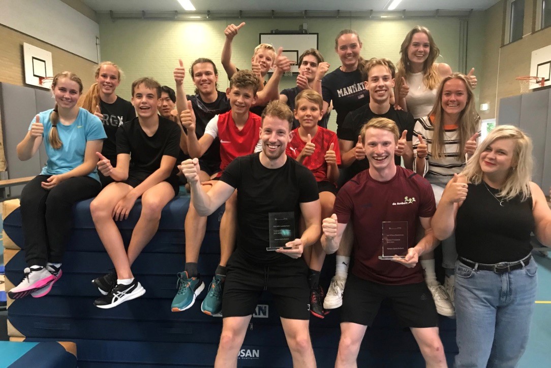 Het is uitgebreid gevierd met een réunie van leden en oud-leden. Ook Ditte was erbij en haalde oude herinneringen op. Uit handen van afdelingscoördinator Kimberley Schotsman ontvingen de beide trainers een glazen standaard met persoonlijke inscriptie als blijvende herinnering aan hun jaren bij GV SPARTA.