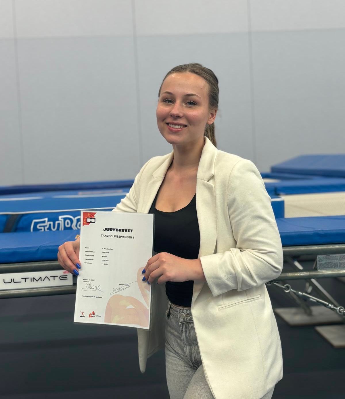 Fleur de Rook heeft vorige week het nationaal jurybrevet trampolinespringen uitgereikt gekregen. Daarmee mag de Spartaanse bij nationale wedstrijden en kampioenschappen naast de uitvoering ook de moeilijkheidsgraad binnen het trampolinespringen vaststellen. De licentie TR4 is de hoogst haalbare binnen de Koninklijke Nederlandse Gymnastiek Unie.