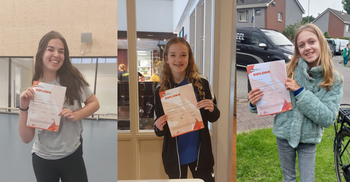In de afgelopen weken hebben maar liefst drie dansjuffen hun lesdiploma niveau 1 behaald! Anoa Middel, Lara Vink en Naomi Kroondijk hebben alle drie hun vaardigheden laten zien en zijn nu bevoegd om de trainsters te ondersteunen bij de danslessen. Goed gedaan meiden!