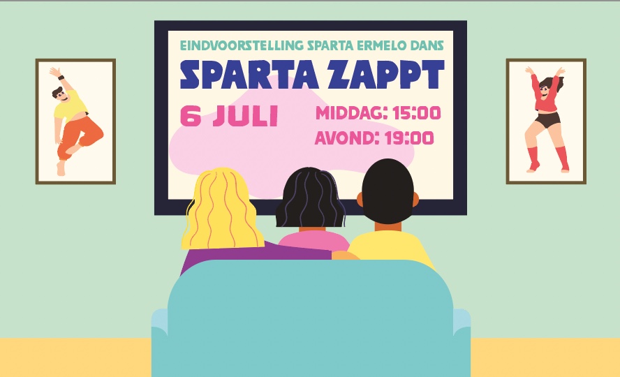 Op zaterdag 6 juli a.s. sluit de afdeling Dans van Sparta Ermelo het dansjaar af met een fantastische eindshow in het Huis van Ermelo. In een middag- én avondvoorstelling nemen alle dansgroepen en de trainers het publiek mee langs verschillende televisieprogramma’s. Een gezellig uitje dus bij Sparta zappt! Kaartjes zijn te koop via Agenda - Huis van Ermelo, maar wees er snel bij. Op = op!