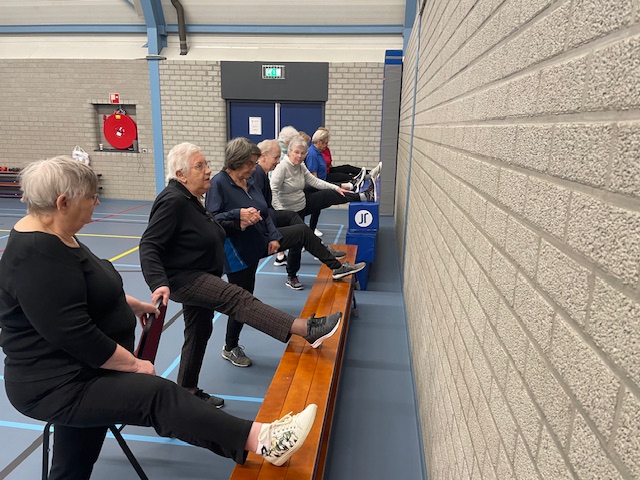Iedere maandagochtend is de Lekker Bewegen 70+ groep actief. Op een na zijn het allemaal 75 plussers en de oudste is zelfs 89 jaar. Kijk eens wat ze allemaal kunnen, maar ook durven.