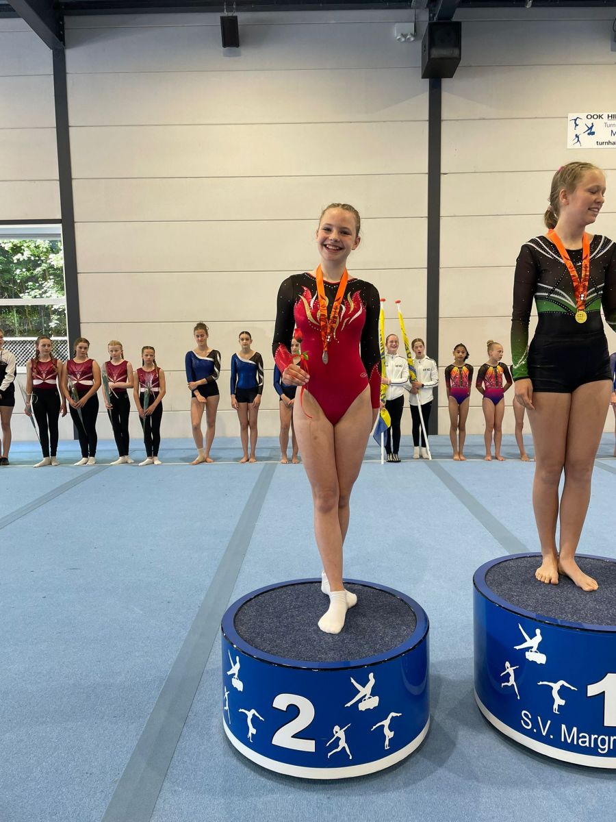 Senna Wallet heeft ook zeer sterk geturnd en liet prachtige, zeer nette oefeningen op alle toestellen zien. Daarmee is Senna op het podium geëindigd met een welverdiende tweede plaats!