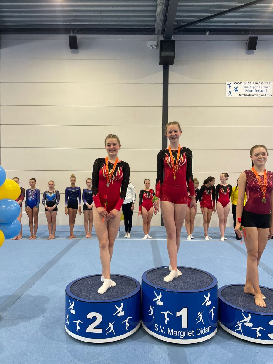 Mirthe Knol turnde een foutloze wedstrijd. Daarmee wist zij zich overtuigend naar de eerste plaats te turnen. Ook Sanne Folkers liet zich van haar beste kant zien. Zij turnde eveneens foutloos en behaalde de tweede plek, net achter haar clubgenootje. Lieke van de Beek liet vooral op vloer zien waar ze goed in is: met een prachtige oefening wist ze op dit onderdeel de eerste plaats te behalen. Alles bij elkaar leverde dit haar een knappe vijfde plek op in het eindklassement. Bo van Rijn turnde ook een keurige, foutloze wedstrijd. Vooral haar sprong was erg netjes. Zij eindigde uiteindelijk op een verdienstelijke zesde plaats.