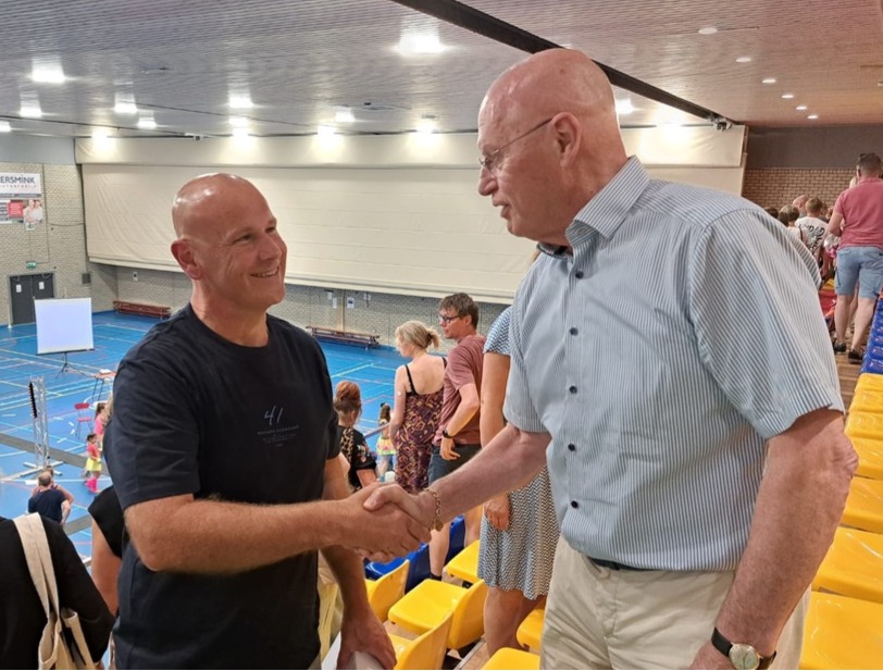 Vanaf september 2021 t/m juni 2025 was Robert Jongman, vader van een dansgymnast, de penningmeester van onze vereniging. Tijdens de finale van de boeiende voorstelling Nostalgie door de dansafdeling in De Sypel Harderwijk is hij daarvoor bedankt. Uit handen van vicevoorzitter Hans van Zetten ontving Robert Jongman de glazen plaquette met inscriptie als blijvend aandenken aan zijn bestuursperiode als vrijwilliger bij SPARTA Ermelo.
