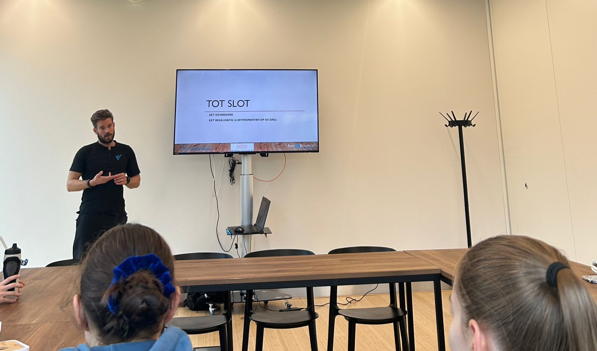Na de krachttraining verzorgde Berry een informatieve sessie over voeding in combinatie met topsport. In deze sessie deelde hij waardevolle inzichten en praktische tips voor een gezonde en prestatie bevorderende voeding rondom trainingen en wedstrijden. Hij ging ook in op specifieke vragen van de sporters, waardoor het een interactieve en leerzame ervaring werd.